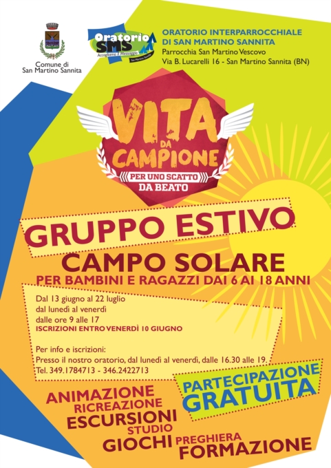 Dopo la pausa dell'anno scorso, Oratorio SMS riprende le attività estive, con il patrocinio del Comune di San Martino Sannita e il sostegno della parrocchia di San Martino Vescovo. IL TITOLO