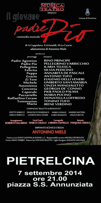 L'appuntamento è per domenica 7 settembre, a Pietrelcina, alle ore 21. Mondo Musica & Teatro, Passione Educativa e il Comune di Pietrelcina vi aspettano per parlarvi di lui: il giovane padre Pio.